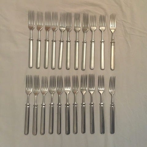 Käytetyt pääruokahaarukat 3 kpl, ruostumatonta terästä - haarukoissa ruotsiksi teksti Rostfritt ståhl.
