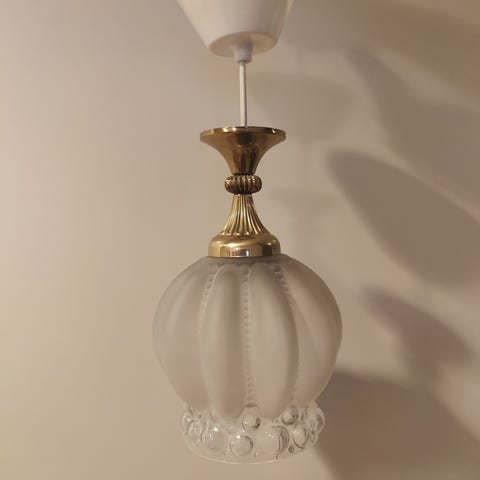 Lasi/messinki kattovalaisin. Lasikuvut kaikki ehjiä, muutenkin virheetön, toimiva. Merkki Hedengren.