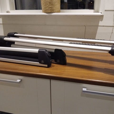 Kahtena talvena käytetyt kattotelineet. Ollut käytössä 2012 vuoden C 250 farmarissa. W204/S204