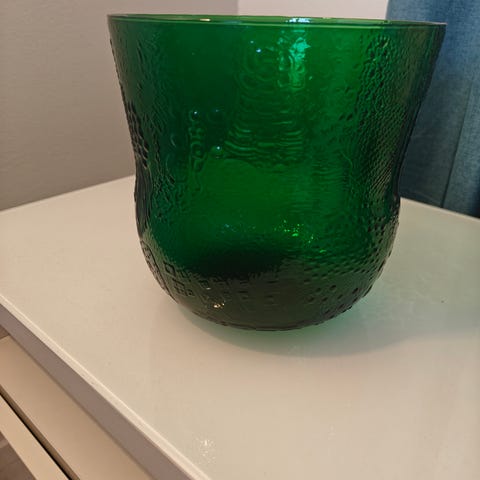V. 1979-1984 valmistettu Nuutajärven tarjoilukulho, suunnittelija Oiva Toikka, halkaisija n. 26 cm ja korkeus n. 10 cm, paino 1,6 kg. Nouto tai postitus.