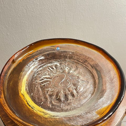 Hieno Kivi-set sarjan (Pertti Santalahti) lasinen tarjoiluvati / kulho, värinä ruskea ja kirkas. Erikoinen nyppyläinen ulkopinta. Halkaisija 27 cm. Erinomainen kunto.