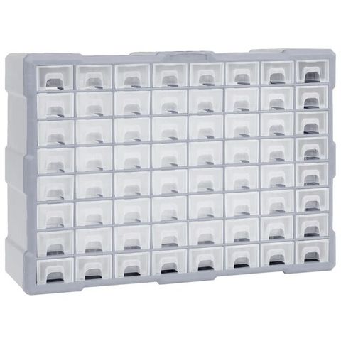 Tässä ihanteellisessa monilaatikko järjestelijässä on yhteensä 60 laatikkoa ja se on suunniteltu erilaisten esineiden siistissä järjestyksessä pitämiseen. Sitä voidaan käyttää myös ompelu- tai ruuvilaatikostona.
