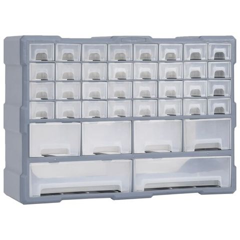 Tässä säilytysyksikössä on 60 pientä laatikkoa, jotka pitävät käsityökalut ja tarvikkeet kuten kiinnittimet järjestettyinä ja kätesi ulottuvilla. Työkalukaappi on valmistettu iskunkestävästä muovista, joka on sekä kestävää että vakaata materiaalia. Laatikot on valmistettu läpinäkyvästä muovista, sisällön nopean tunnistamisen vuoksi. Tämä käsityölaatikko on ihanteellinen muttereiden, pulttien, ruuvien, naulojen, ym. komponenttien varastointiin.