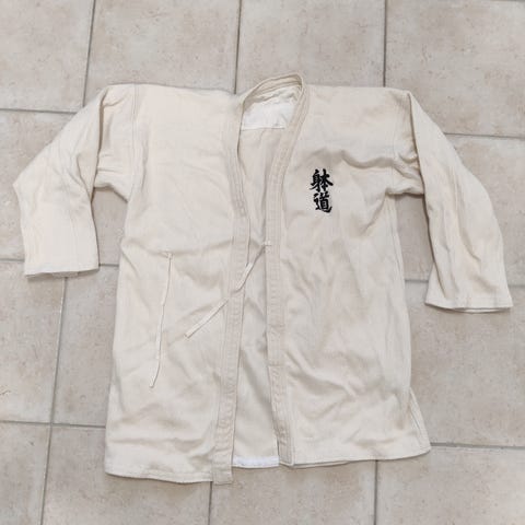 Muutaman vuoden käytössä ollut taidopuku. Sis. riisikankainen taidogi, joka erittäin hyväkuntoinen, sekä hakamahousut, joissa yksittäisiä vikoja (kts. kuvat, korjattu toinen vyölenkki ja rispaumaa housunlahkeessa), mutta täysin treenikäyttökelpoiset. Molemmat puvun osat 160cm.