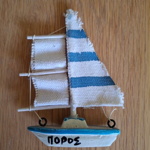 Puinen pienoismalli laivasta. Hyväkuntoinen ja virheetön mitoilla pituus 34cm,korkeus 25cm ja leveys 6cm.
