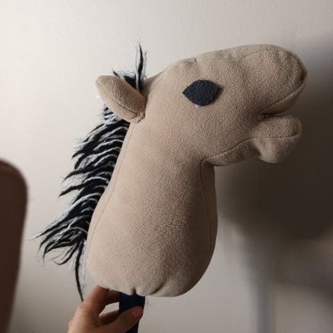 Erittäin persoonallinen keppiheppa. Ostettu aikanaan jostain käsityö- tms. tapahtumasta, tehty siis mm. vanhasta juuttisäkistä. Ei varmasti tule vastaan toista samanlaista :) Tätä ei voi järkevästi postittaa joten vain nouto Luumäeltä tai kuljetusmahdollisuus muualle omien menojeni mukaan.