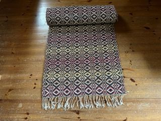 Kirkonkaarisidoksella kudottu räsymatto uusista kuteista.