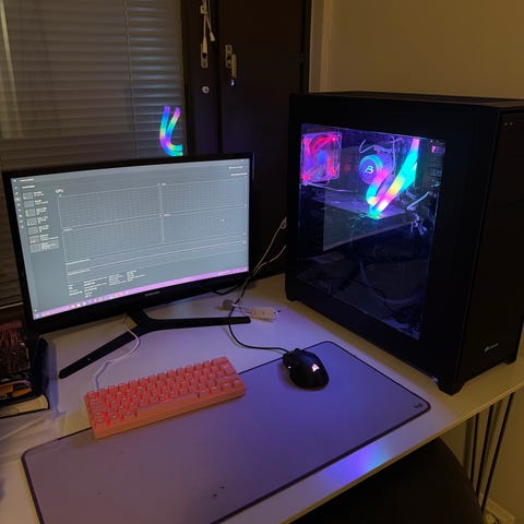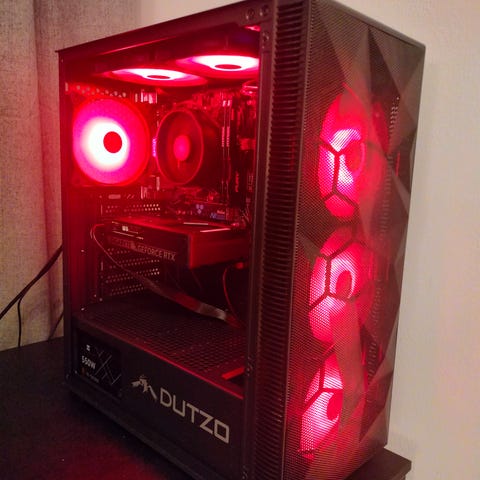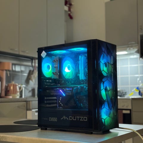 Käyttövalmiiksi kasattu pelitietokone.