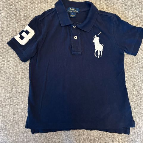 Valkoinen Ralph Laurenin karhumekko. Muutama haalea jälki ja saunasta hieman purkautunut. Koko 5v.