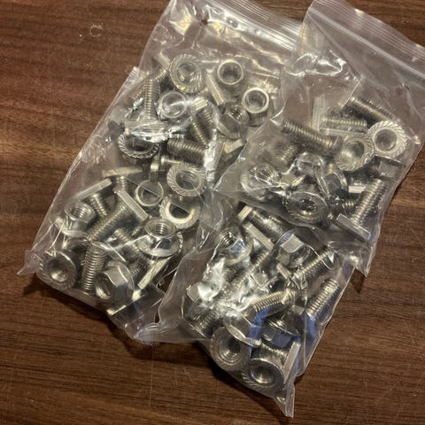 Schletterin tiilikattokiinnikkeitä. Mukana kiinnikkeet, joihin kisko kiinnitetään. Noin 15 kpl löytyy. Katso kuvat.