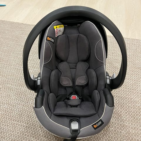 turvakaukalossa on BeSafe Newborn Hugger -vauvatuki, joka takaa ergonomisen asennon pienelle vauvalle.