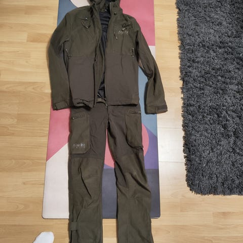 Kevyt puku kesä ja alkusyksyn metästys ja retkeily käyttöön. Ehjä ja hyväkuntoinen. Takki 2XL ja housut 3XL