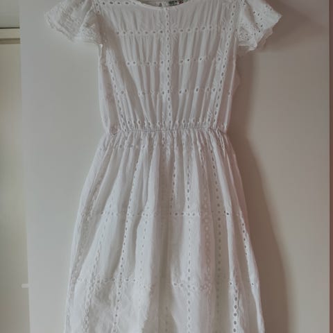 Siisti kunto. K-k noin 50 cm ja pituus 94. Väri vaalea violetti/sininen. Frillamekko