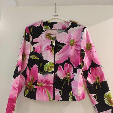 Laadukas kaunis jakku. Väri ei kirkas valkoinen. Lämmin vaalea beige…. Kuvassa näkyy oikea väri. Koko M . Puuvilla 80%.