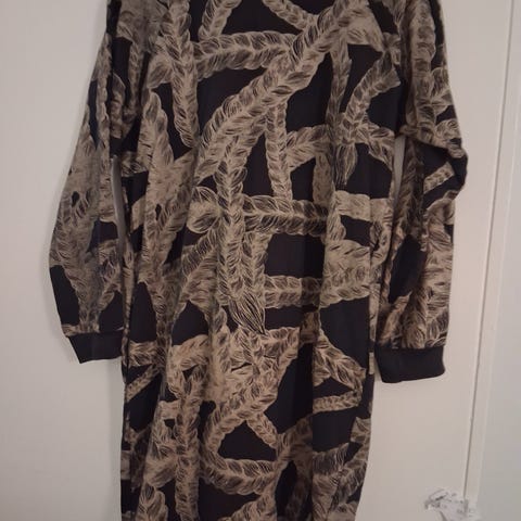 Myydään Vimman harmaakirjava Panda college-tunika, sivuilla taskut, materiaali ohutta collegeneulosta, raglan-hihat, valkella pohjalla musta-harmaita pandoja. Onesize. Mitat pituus 107, kai-kai 53, hiha 49, hauis 40.