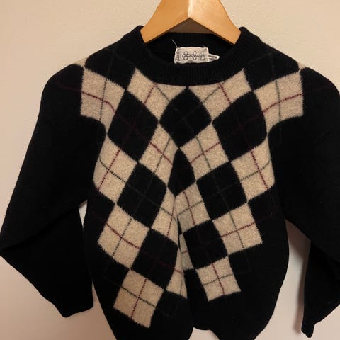 Punasävyinen raidallinen pirteä villapusero seuraavalle. 100% puuvillaa.