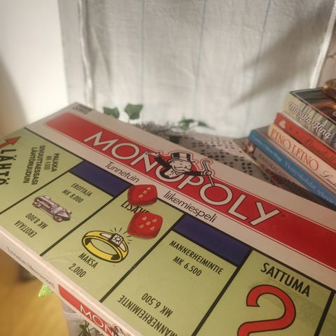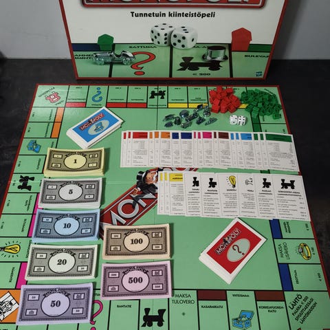Laudasta nousevan linnan takia (ja toki kaikki muukin tässä versiossa) suositumpi ja hitusen jo harvinainen monopoliversio. Kaikki tallessa ja kunnossa,hieman pelattu niin kaikki setelit eivät ole uudenkarheita ja toki aina jotain muuta pientä mahdollista johon järkeni ei riitä. Nouto Raisio/postitus 7e.