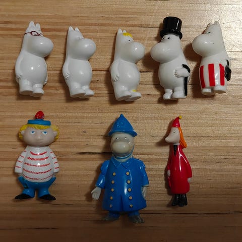 Muumilaakson asukkaita kuvan lauma. Haisuli kivinen tms ja siltä puuttuu toinen jalka.