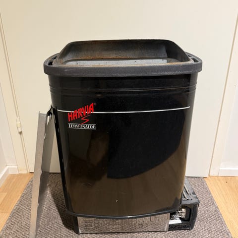 Tyylikäs kiiltäpäpintainen musta kiuas pitää sisällään reilun kivimäärän pienelle kiukaalle, joka antaa erinomaiset löylyt.