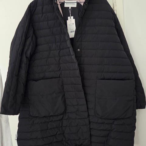 Naisten tyylikäs Marimekko AILLON SOLID untuvatakki ulkoiluun ja retkeilyyn tai vapaa-aikaan. L KOKO.