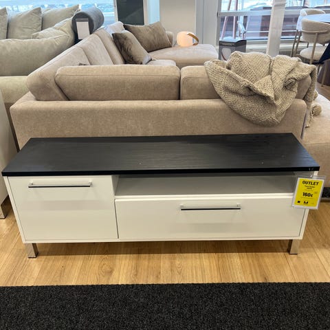 Kaipaisiko olohuoneesi pelkistettyä tv-tasoa, joka tarjoaa myös mukavasti säilytystilaa? Tässä tv-tasossa on sekä kaappi että tilava vetolaatikko, jossa voit säilyttää esimerkiksi konsoleita ja pelejä. Kompaktin kokoinen kaluste mahtuu mainiosti pienempäänkin huoneeseen!