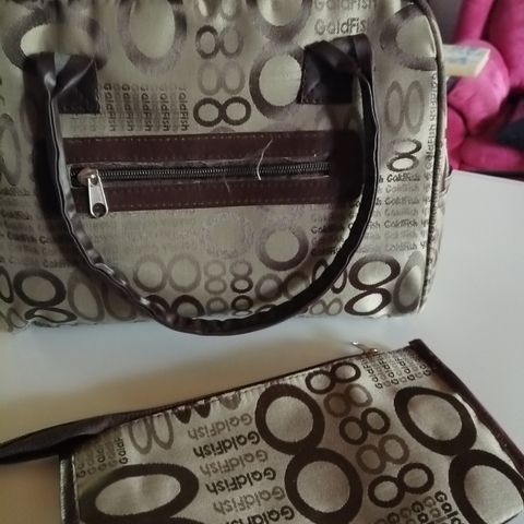 A+more tummanpunainen pikkulaukku, mukana irrotettava olkahihna. Koko noin 23x20x8cm. Vetoketjulla suljettava, sisällä ei-suljettava lisätasku. Lemmikkitalous.