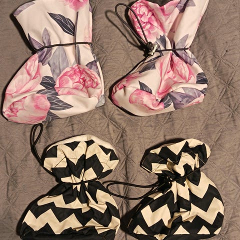 Turkoosit vauvan villaiset töppöset, olleet vain nukke leikissä käytössä, eli hyvä kuntoiset.