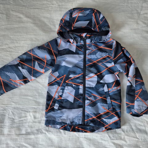 Topattu takki irrotettavalla hupulla, Name it, 116 cm. Toisessa hihassa pieni reikä päällimmäisessä kankaassa (kuva).