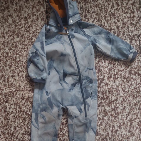 Molon ihana kukkahaalari, koko 92 mutta mennyt meillä ennemmin 86 koossa. On pientä kokoa. Kankaan pinta hyvässä kunnossa. Resoreissa kulumaa. Huppu irrotettava.