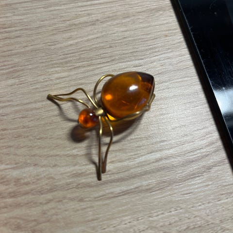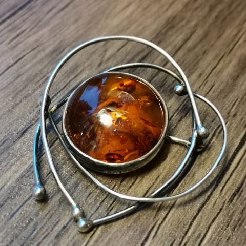 Kullatut meripihka rintakoru, (40e) sekä solmioneula.(20e) Yhdessä ostettuna 50e