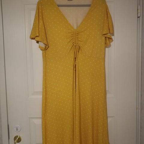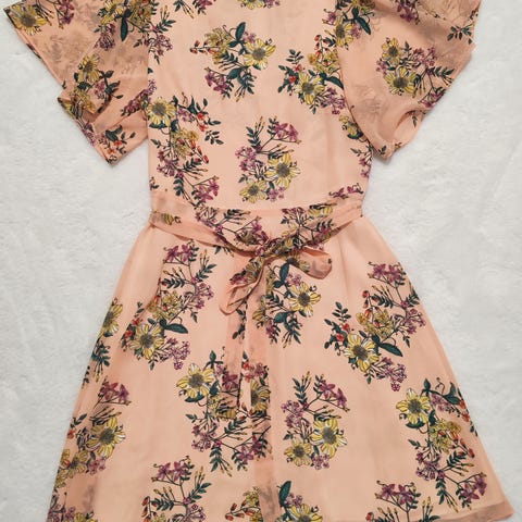 Tosi kaunis mekko työhön tai vapaa-aikaan tai bileisiin. Siisti, vain pari kertaa pidetty. Sivutaskut. Ihana yllä. k-k mitta 42 cm, 92 cm pituus.