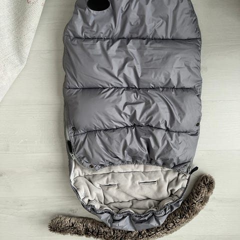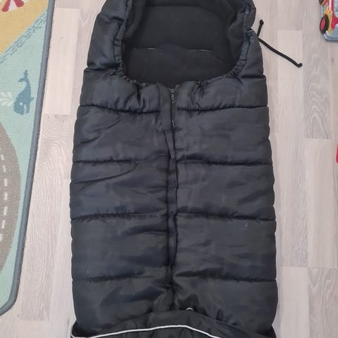 Myydään paksu, musta toppapussi vaunuihin/rattaisiin. Vettähylkivä pinta. Jakopään saa auki. Sisällä reiät valjaille.