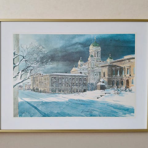 Kimmo Pälikön kehystetty numeroitu vedos Kauppatorin rantaa. Koko 52×43