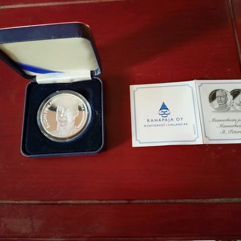 Monetan mitalit " Marsalkka Mannerheim -suomalainen suurmies" neljä kappaletta salkussa.