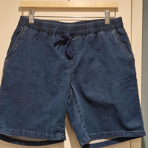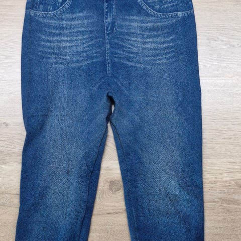 Napillisilla reisitaskuilla varustetut farkkujoggersit. Kuminauha lahkeissa ja vyötärössä. Vyötärössä myös kiristysnauha. Lahkeen pituus 70cm ja leveys 15cm. Vyötärö 84cm, mutta kuminauha antaa reilusti periksi.