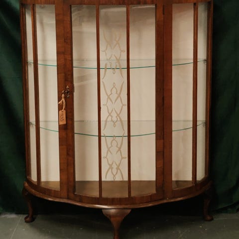 Kaunis vanha ja hyväkuntoinen lasivitriini.