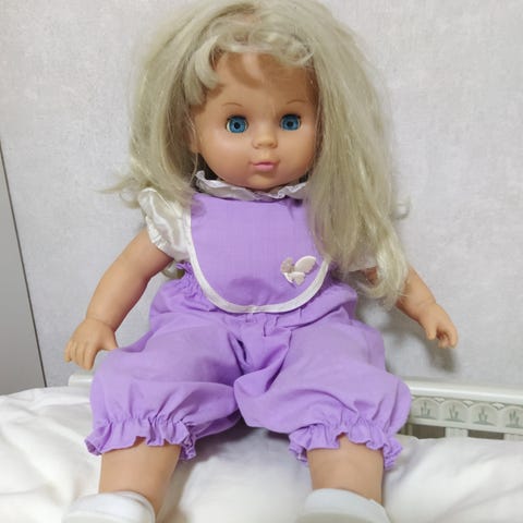 Isohko nukke noin 50 cm 80-luvulta ja mittojen mukaan ompelijan tekemiä vaatteita äkkiseltään melkein 100 kpl. Kastemekko, hääpuku, talvitakki, hattu, kaulaliina, saapikkaat, sadetakki, paitoja, mekkoja... Lisäksi makuupussi, kylpytakki, pyyhe, kampa ja papiljotit. Toridiili tai nouto.