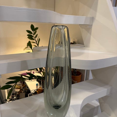 Gunnel Nymanin suunnittelema lasimaljakko. Ei signeerattu. Maljakon korkeus 23cm eli varsin näyttävä esine.