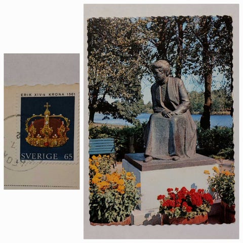 Ruotsalaisia kulkeneita paikkakuntakortteja postimerkkeineen