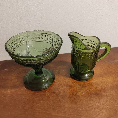 Riihimäen lasin vihertävä / kellertävä Onerva sokerikko ja kermakko