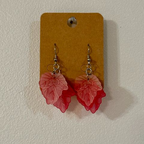 Myydään uudet ja käyttämättömät koukulliset eri värisillä akryylilehdillä ja eri kokoisilla helmillä varustetut korvakorut silikonitaustoilla. Korun pituus noin 7,5 cm ja leveys 2,5 cm. Materiaalina huurretut ruskeat, oranssit ja vaaleansiniset akryyliset lehdet, mattapintaiset turkoosit ja persikan väriset Jade kivihelmet sekä Suomessa testattu nikkelitön, lyijytön ja kadmiumvapaa ruostumaton teräs. Kaikki materiaalit on ostettu suomalaisista turvallisia korunosia myyvistä kaupoista.