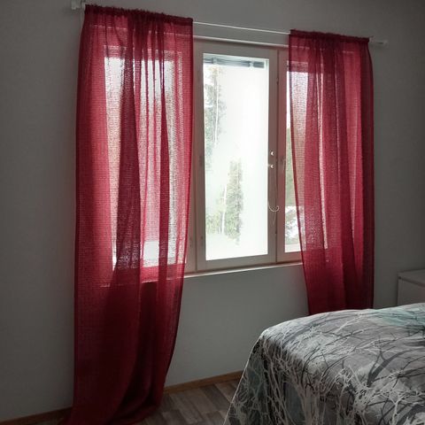 Ohutta mutta kauniisti laskeutuvaa kangasta. 150 cm leveät ja 240 cm pitkät verhot. Ostettu valmiina. Aika vanhat. Mutta siistit ja puhtaat ja hyvin harvoin käytetty. Näitä on 4 verhoa. Jos kiinnostaa niin tässä olisi tälläiset 💛🧡 kaikki 3 verhoa vain 8 euroa