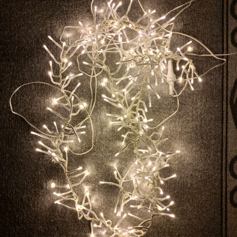 Paristokäyttöinen (3xAA) Clasun valonauha, jossa ledien päällä tuollaiset metalliset tähdet. Kuvassa siis valoketju rullattuna.