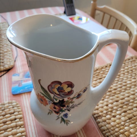 Muutoin siisti ja ehjä kokonaisuus, vain pienenpieni lohkeama vadin reunassa