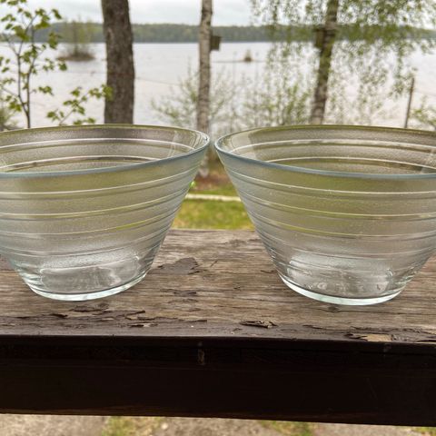 Lasiset jälkiruokakupit 6kpl. Korkeus 4,5cm ja halkaisija 12,5cm. Kunto moitteeton. Nouto Saimaanharjulta 10km Lappeenrannasta. Voin postittaa mutta postikulut sinulle