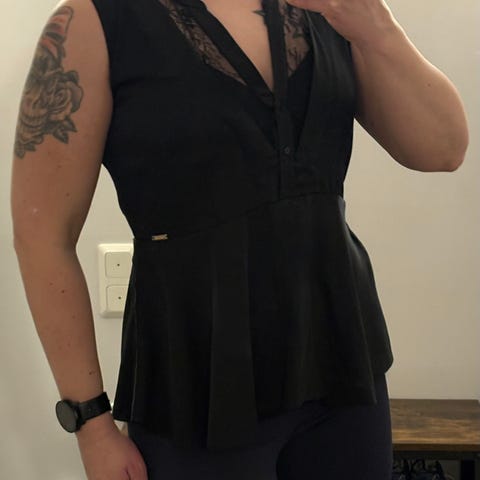 Todella hyväkuntoinen Guessin kukallinen toppi, ilmava, kauniisti laskeutuva kangas. Röyhelö helmassa, hieman pidempi malli. (Tunikapituus) Koko M