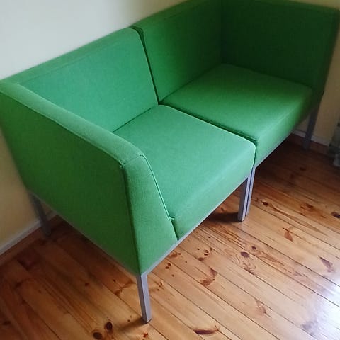 Valkeat nahkaiset Martela Movie sohvamoduulit, kaksi kpl. Koko 90x90/moduuli. Korkeus 70 cm. Sokkelien tilalle vaihdettu 10 cm jalat. Naarmuja ja käytönjälkiä on. Itse olen pitänyt taljoja päällä. Myydään molemmat kerralla. Yhteishinta 110.