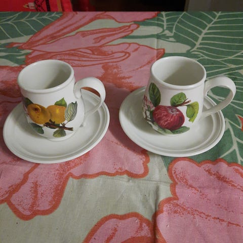 Myydään Pomona sarjaa pieni mokkakuppi aluslautasella. Hyvä kunto. Hinta 7 euroa. Nouto tai postit.