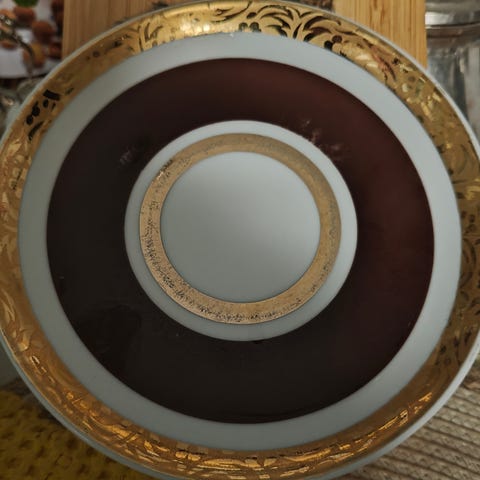 Vanha venäläinen tassi Kuznetsov, kultainen koristelu, ehjä.