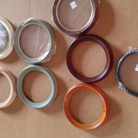 Puuvalmis kapea pyöreä kehys, halk. 21,5 cm ja aukko takana 20 cm.